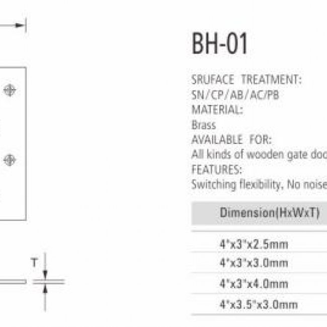 Model No.: BH-01 Material: Brass Finish: SN,CP,AB,AC,PB For Interior Doors