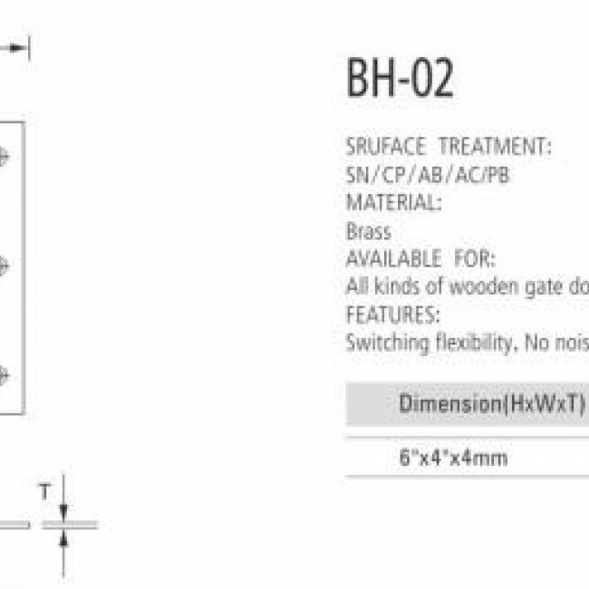 Model No.: BH-02 Material: Brass Finish: SN,CP,AB,AC,PB For Interior Doors