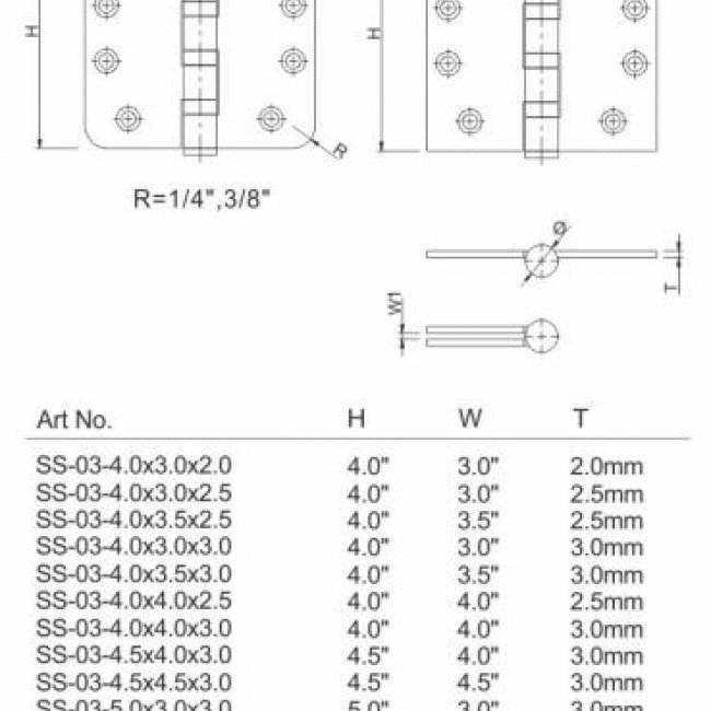Model No.: SS-03 4BB SS Material: Stainless Steel Finish: SS For Interior Doors