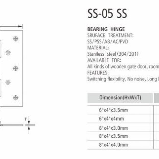 Model No.: SS-05 SS Material: Stainless Steel Finish: SS For Interior Doors