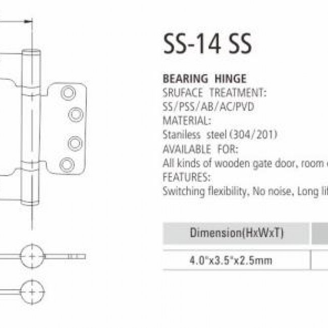 Model No.: SS-14 SS Material: Stainless Steel Finish: SS For Interior Doors
