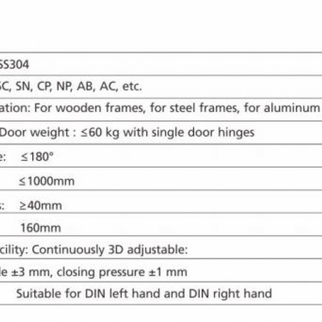 Model No.: ACH 007 Material: Stainless Steel 304 Finish: SC,SN,CP,AB.AC,etc For Interior Doors-3D adjustable