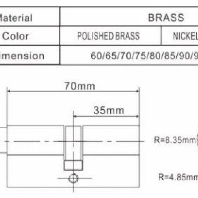 Model No.: CDC-03 PB Material: Brass Finish: Nickel Brushed,Nickel Outer Brushed Econo Standard Profile-Reversible Key