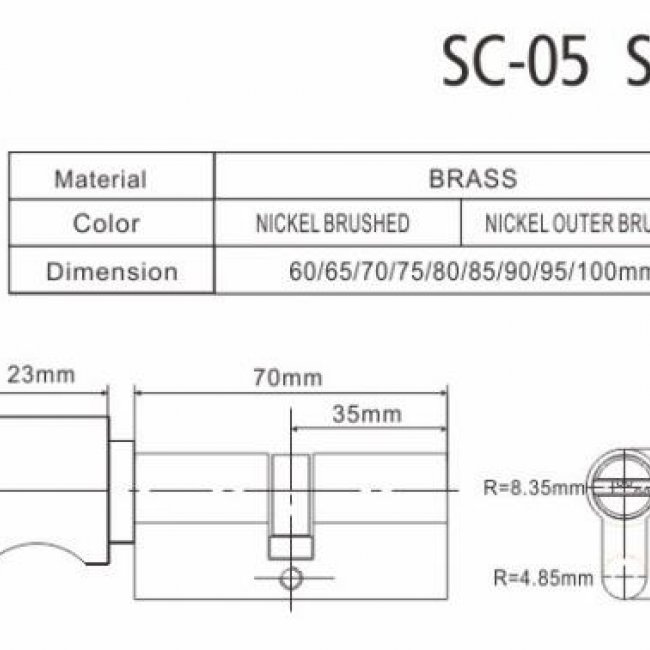Model No.: SC-05 SN Material: Brass Finish: Nickel Brushed,Nickel Outer Brushed Econo Standard Profile-Conventional Key